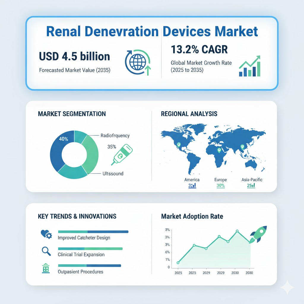 ROCKVILLE, MD, UNITED STATES, October 16, 2025 /EINPresswire.com/ -- The global renal denervation devices market stands at the threshold of a transformative decade, reshaping the landscape of interventional cardiology and hypertension management. According to a recent report by Fact.MR, the market is projected to expand from USD 1.3 billion in 2025 to USD 4.5 billion by 2035, growing at a CAGR of 13.2% during the forecast period.
